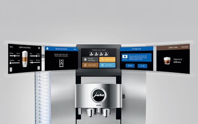 La Z10 es un placer para sus propietarios y cumple todos los requisitos de un clásico del diseño: Se caracteriza por la máxima calidad, una elegancia atemporal y una funcionalidad sin concesiones. Su elegante diseño ondulado acentúa el depósito de agua y confiere al frontal una forma convexa-cóncava. El panel de control curvado hacia fuera invita a la interacción, mientras que la plataforma para tazas forma un impresionante escenario. Gracias a su alineación en el ángulo ideal,el visualizador a color de 4,3 pulgadas revela todo su brillo e ilumina los mundos de placer. Al echar un vistazo a la Z10, descubrirá el amor por el diseño en cada detalle.